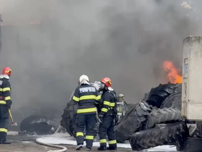 100 de anvelope și trei remorci de TIR au luat foc în Timișoara. Degajări de fum gros și negru