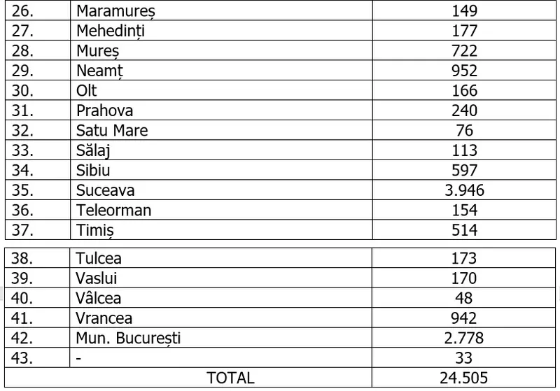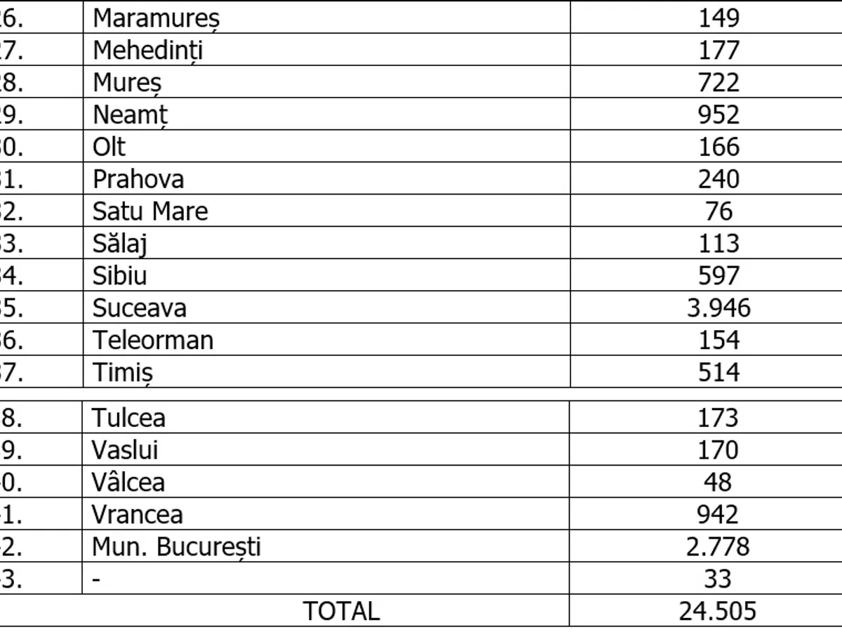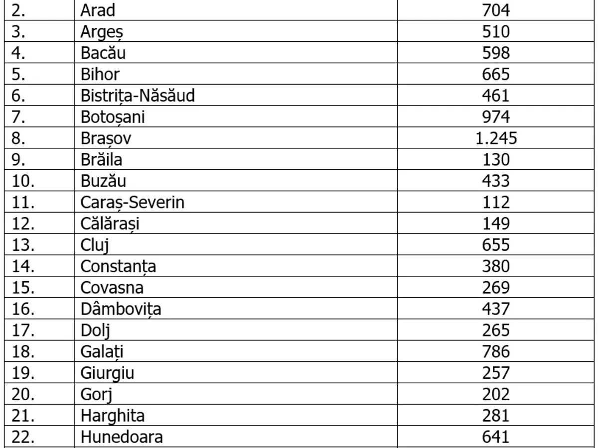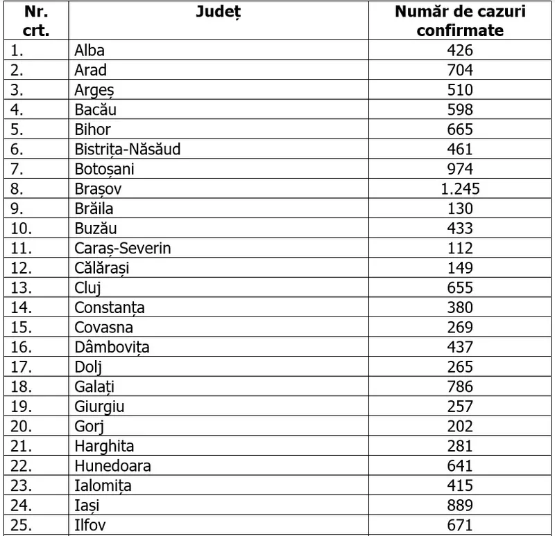 Numărul de cazuri confirmate, pe județe