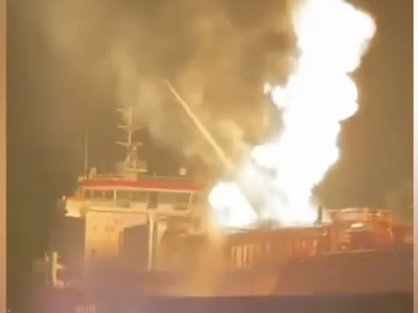 Incidentul a fost provocat de o dronă care a lovit o navă plină cu GPL, aflată în zona localității ucrainene Ismail. Nava a fost rapid cuprinsă de flăcări.
