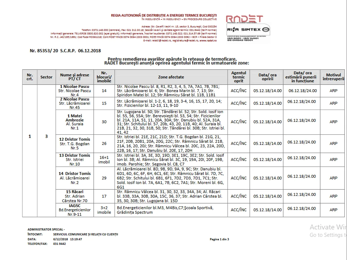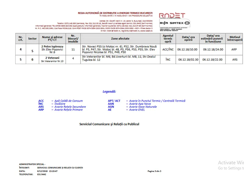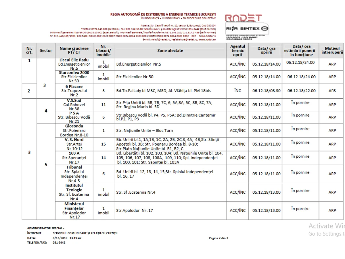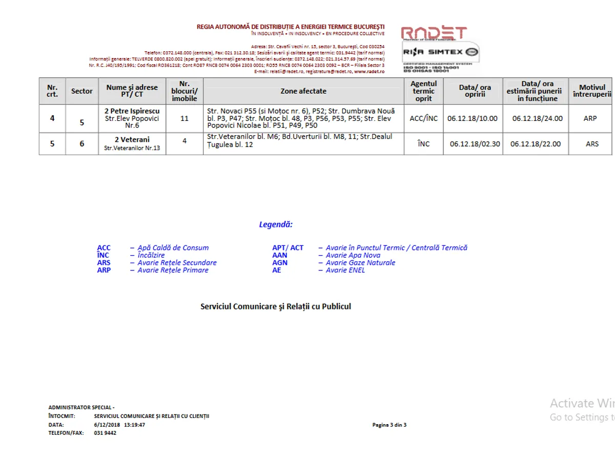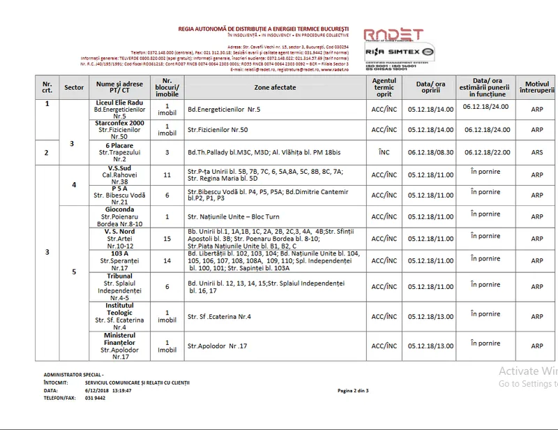 RADET, societate în insolvenţă, asigură transportul şi furnizarea energiei termice pentru peste 560.000 de apartamente din Bucureşti şi 4.900 de instituţii.