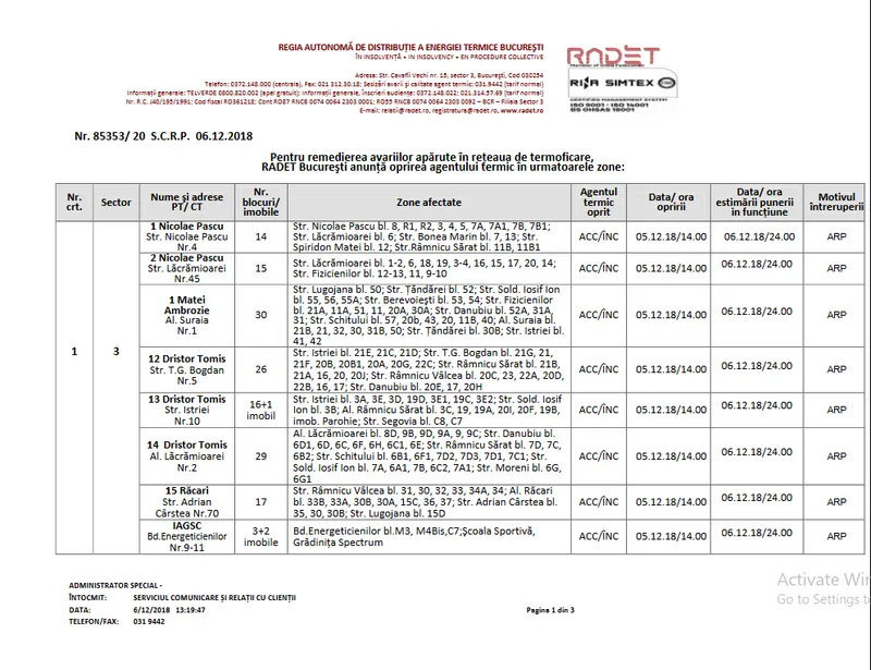 321 de clădiri din București, oprite de la alimentarea cu căldură de la Radet