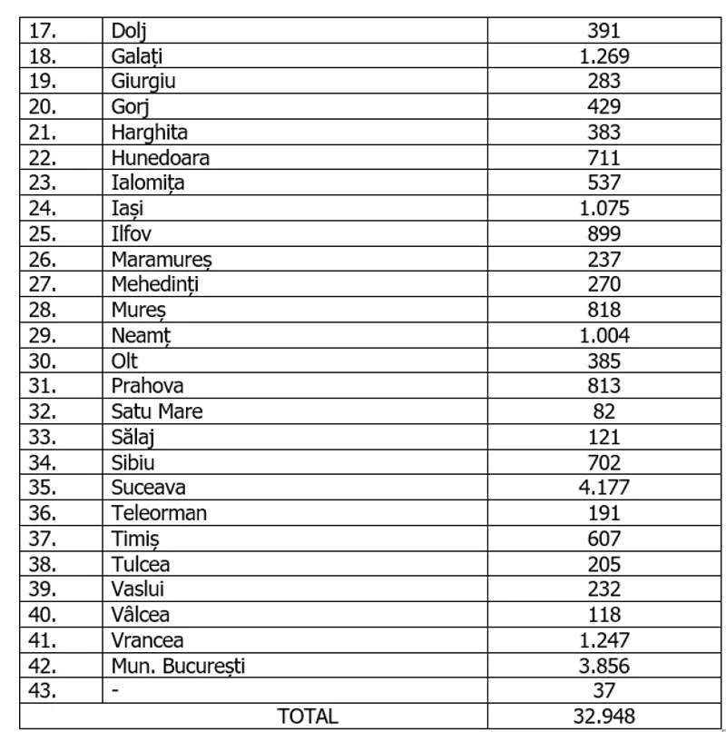 În total, în România au fost confirmate până acum 32.948 de cazuri de persoane infectate cu coronavirus, iar 1.901 oameni au murit.