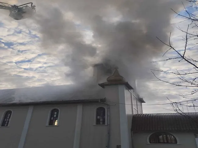Focul a cuprins acoperişul bisericii greco-catolice din localitatea Crăciuneşti.