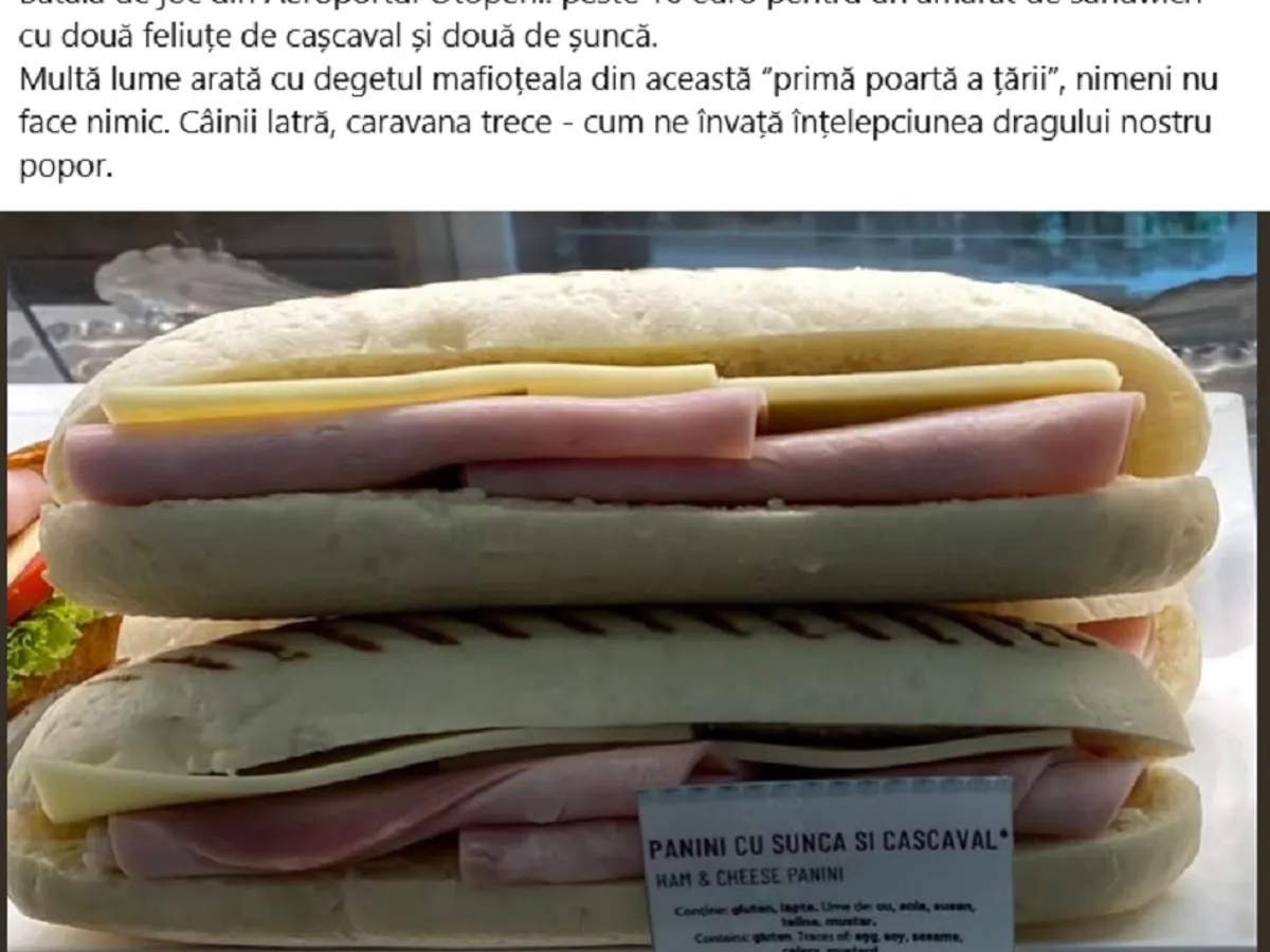 „Bătaia de joc din Aeroportul Otopeni: peste 10 euro pentru un amărât de sandwich cu două feliuțe de cașcaval și două de șuncă.