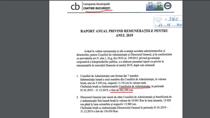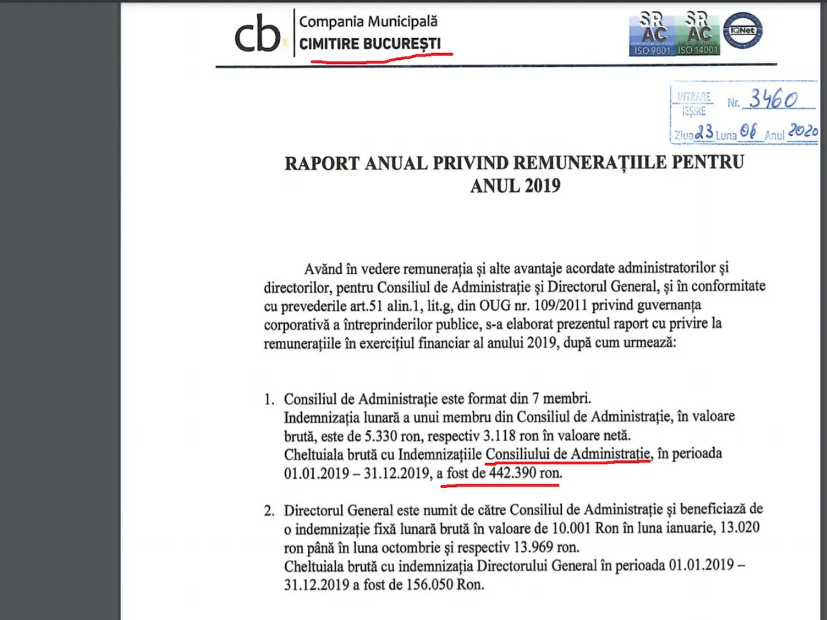 7.600 euro pe lună pentru conducerea Companiei Municipale Cimitire care are pierderi de 2 milioane €