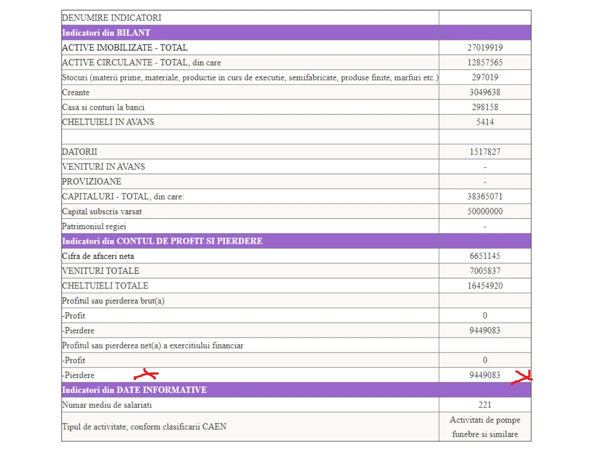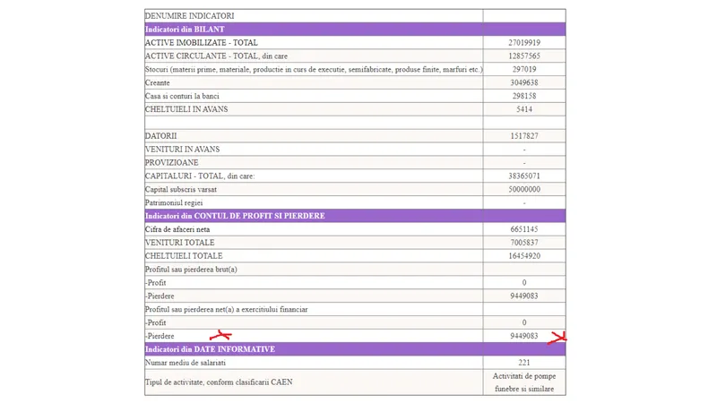 În anul 2019, Compania Municipală Cimitire a avut pierderi de 9.449.083 lei, aproximativ 2 milioane euro. Numărul angajaților este de 221. În 2018, pierderile au fost de 2 milioane de lei (facsimil jos).