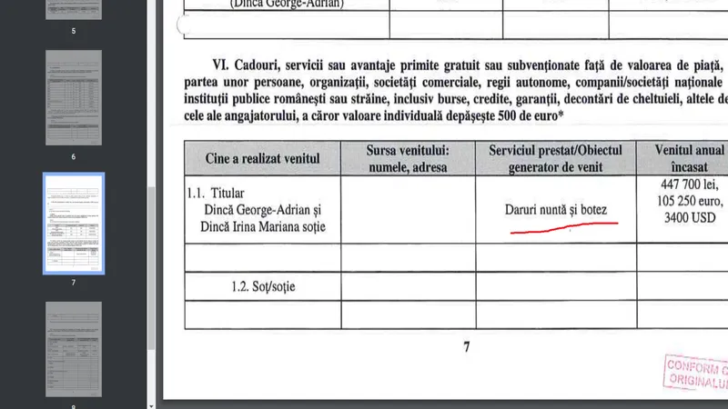 Dincă și-a făcut o nuntă faraonică în anul 2019 când a câștigat 447.000 de lei, 105.200 de euro și 3.400 dolari.