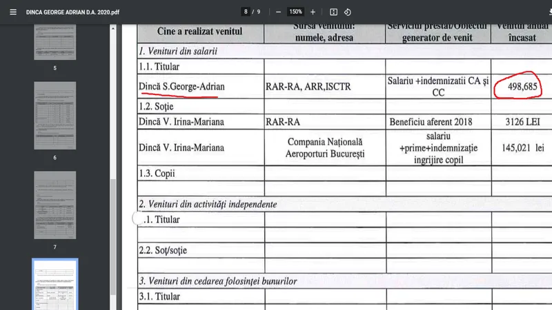 În total în 2019, Dincă a încasat suma de 498.685 de lei. Adică, 8.600 de euro pe lună.