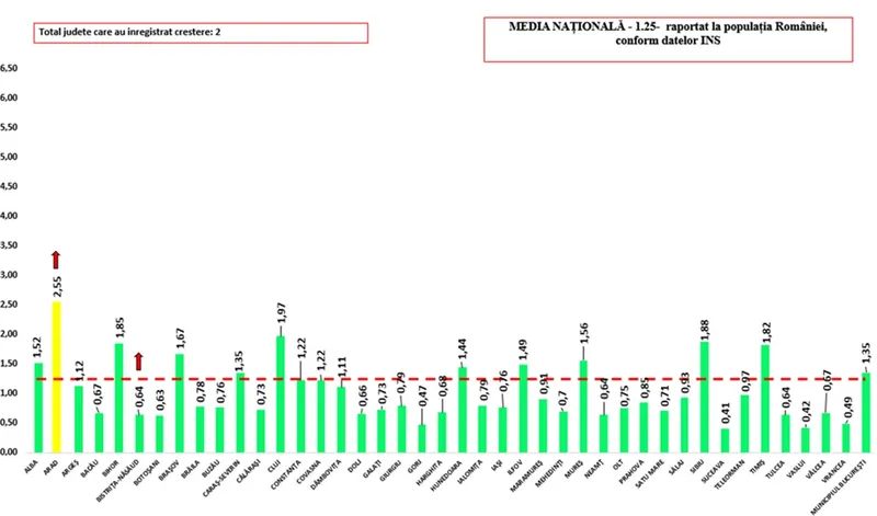 Un singur județ mai este în scenariul galben: Arad - 2,55 la mie