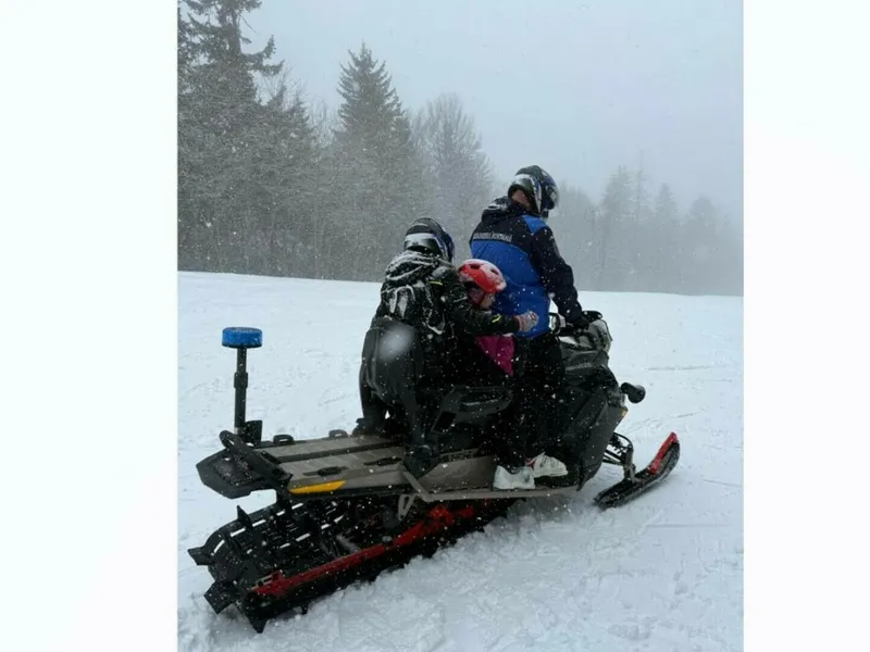 O femeie care a urcat împreună cu fiica sa în vârstă de opt ani, pe pârtia din staţiunea Predeal a cerut sprijin după ce, când a văzut cât de abruptă e pârtia, a făcut un atac de panică şi i-a fost teamă să coboare pe schiuri.