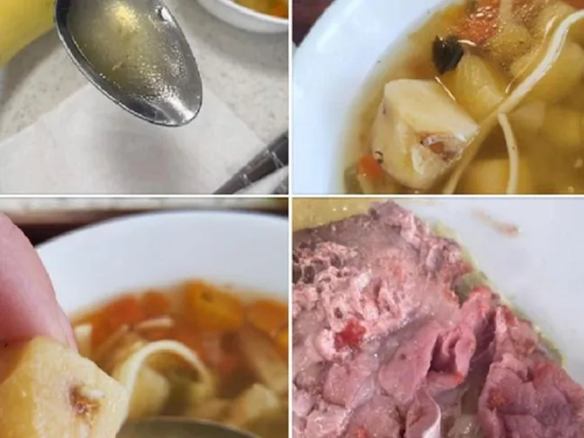 Sindicaliștii de la Europol au postat pe pagina de Facebook a organizației fotografii cu ciorbă, cartofi și carne cu viermi.