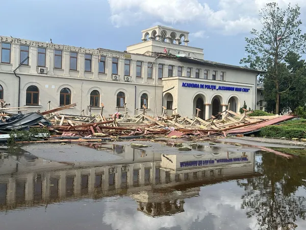 Academia de Poliție, răpusă de furtună. Acoperișul a fost smuls și mai multe camere au fost inundate