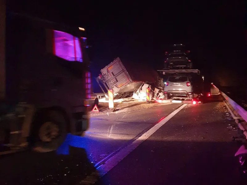 Unul dintre acestea s-a răsturnat pe carosabil, ocupând banda nr. 2 şi parţial prima bandă ale sensului de mers către Constanţa”, a transmis, miercuri, Centrul Infotrafic.