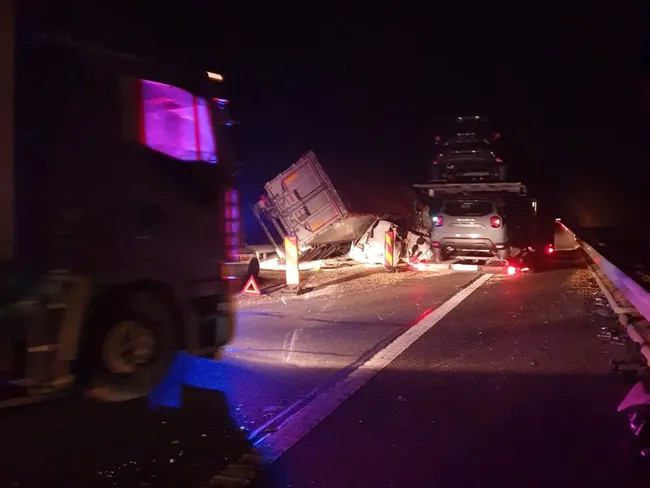 Accident grav pe autostrada A2. Două tiruri s-au ciocnit, iar traficul este blocat