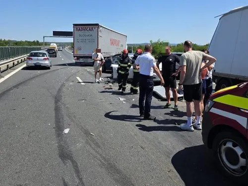 Accident în lanț pe A1. 11 adulți și 3 copii au fost răniți. 7 vehicule, implicate