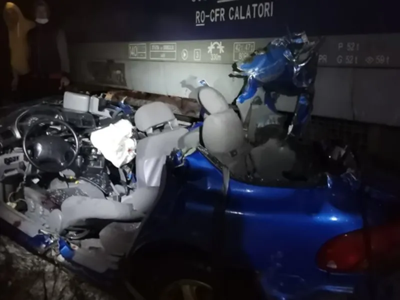 ACCIDENT O mașină, transformată într-un morman de fiare de un tren la Câmpulung Moldovenesc: un mort