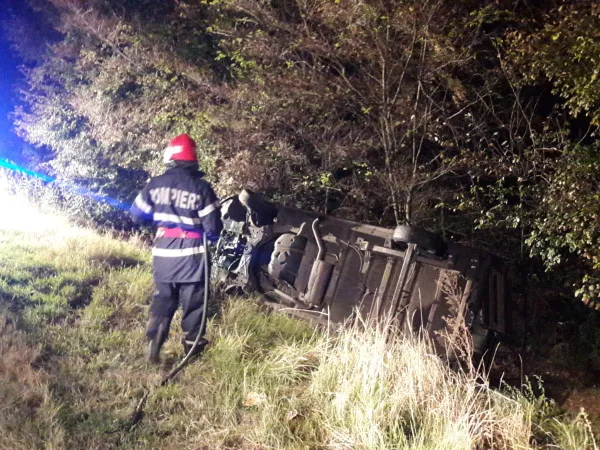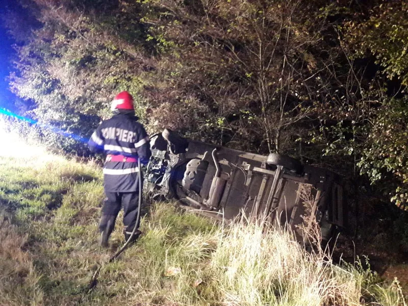 Accident rutier în Teleorman, un microbuz s-a răsturnat, patru persoane au fost rănite