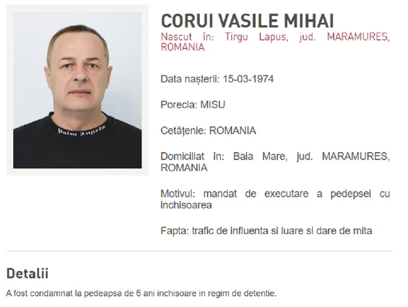 Omul de afaceri maramureșean dat în urmărire este Vasile Mihai „Mișu” Corui (49 de ani), originar din Târgu Lăpuș, cu ultimul domiciliu în Baia Mare.