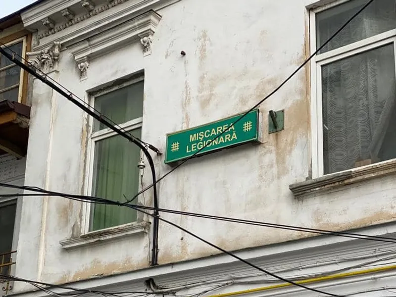 Plăcuță cu Mișcarea Legionară, în văzul lumii pe o stradă din Capitală, deși legea interzice