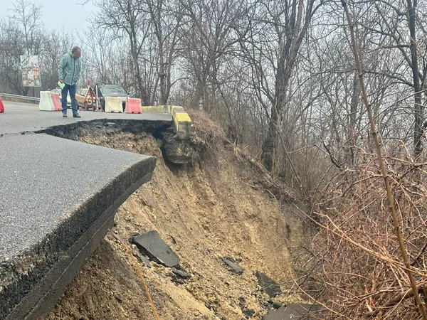 Alertă în Câmpina: o porțiune din DJ 101R s-a prăbușit complet după o alunecare de teren. Trafic blocat total