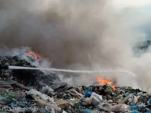 O groapă de gunoi a luat foc pe o suprafață de 5.000 m2