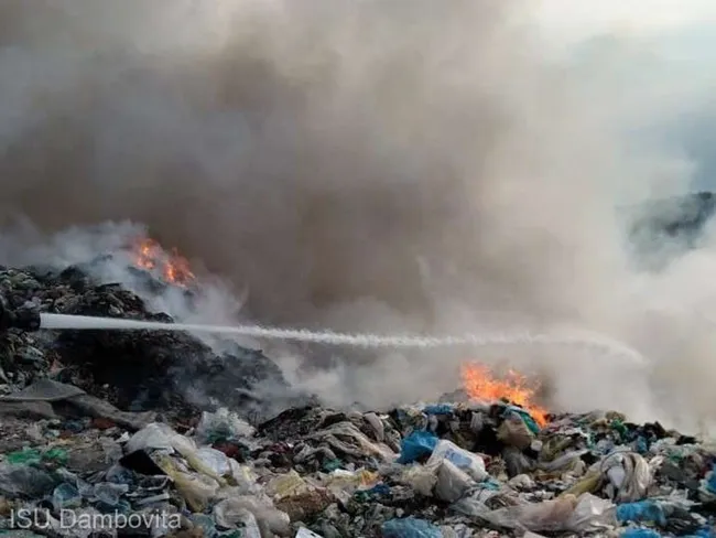 Alertă în Dâmbovița! O groapă de gunoi a luat foc pe o suprafață de 5.000 m2. Populația, avertizată