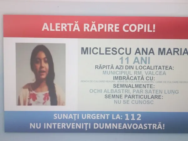 ”La data de 25 ianuarie a.c., în jurul orei 14.50, dispeceratul Inspectoratului de Poliție Județean Vâlcea a fost sesizat prin apelul unic de urgență 112, cu privire la dispariția unei minore, respectiv MICLESCU ANA MARIA, în vârstă de 11 ani.