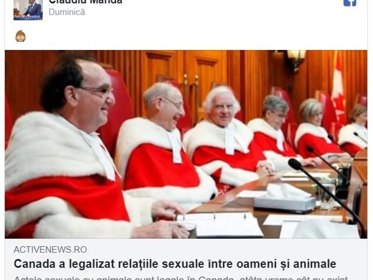 Purtătorul de cuvânt al Ambasadei Canadei a dezmințit informațiile lansate de Liviu Dragnea și de senatorul Claudiu Manda, conform cărora Canada a „legalizat relațiile sexuale între oameni și animale”. Acesta a spus că afirmațiile sunt categoric false și ofensatoare.
