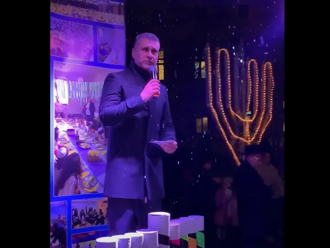 "Aici, în locul acesta este un loc simbolic şi pentru noi astăzi de Hanuka. Hanuka simbolizează, de asemenea, spiritul evreiesc. Să nu se teamă să-şi manifeste credinţa în Dumnezeu. Ieri, în timpul ce evreii din New York sărbătoreau Hanuka, ne-am confruntat încă o dată cu un atac împotriva comunităţii evreieşti din New York.