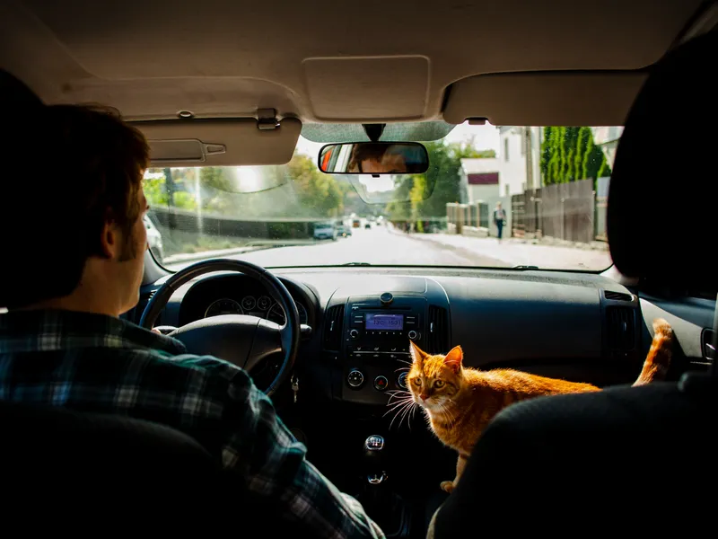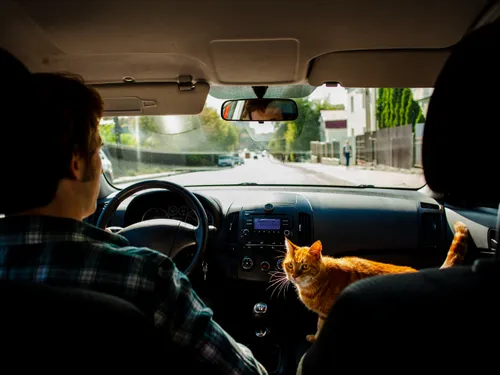 Regula este similară cu cea pentru copii: nu trebuie ținuți pe scaunul din față, iar centura de siguranță nu poate înlocui cușca. Pisicile, la fel ca și copiii, pot provoca distrageri majore dacă nu sunt bine fixate sau dacă se agită. În timpul condusului, o pisică care aleargă prin mașină poate determina pierderea controlului asupra volanului, iar rezultatul poate fi tragic. De aceea, legislația rutieră prevede sancțiuni stricte pentru nerespectarea acestor reguli.