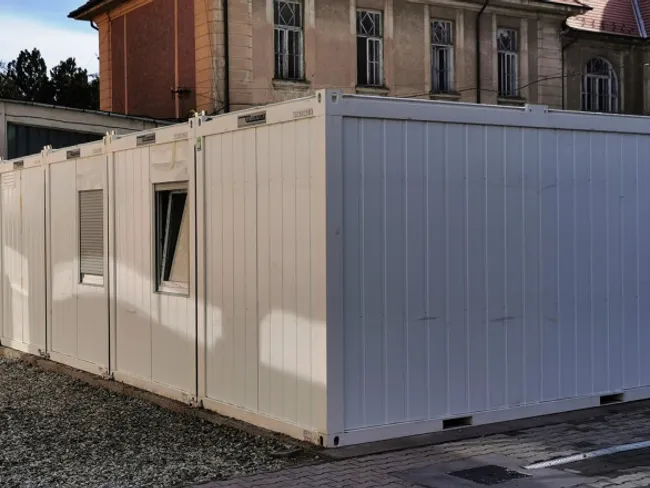 Containerele pentru pacienții cu COVID-19 au fost amplasate în curtea celui mai mare spital din județul Sibiu la jumătatea lunii octombrie. Unitatea medicală afirma că investiția a fost de peste 6 milioane de lei, banii fiind dați de către Consiliul Județean.