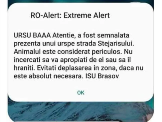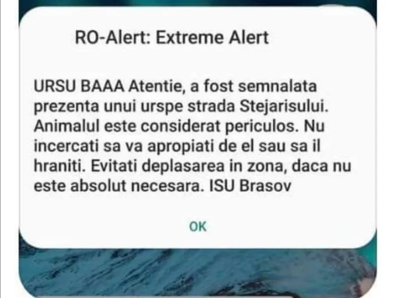 Anchetă la ISU Brașov după ce un mesaj RoAlert a început cu: „Ursu, băăă!”