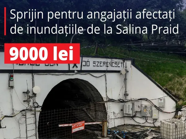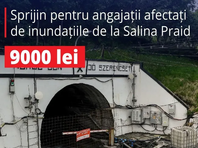Cei 49 de angajați care lucrau la Salina Praid distrusă de inundații vor primi o compensație de 9000 lei. Guvernul va face alocarea bugetară.