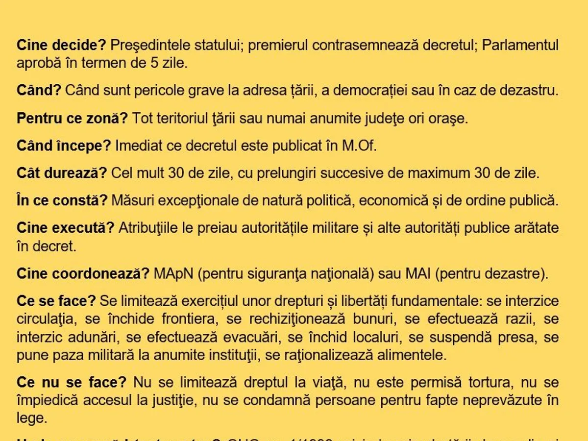 Dacă Parlamentul încuviințează această stare de urgență, cadrul legal după care vor funcționa lucrurile este dat de OUG 1/1999.
