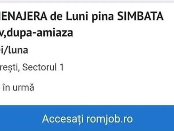 Un bucureștean a postat pe mai multe site-uri de specialitate un anunț că vrea să angajeze o menajeră, căruia îi oferă un salariu de 2.500 de lei. După ce scrie condițiile pentru locul de muncă, individul face și o remarcă rasistă și periculoasă.