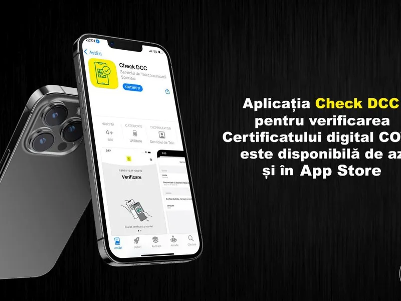 Serviciul de Telecomunicații Speciale informează că aplicația Check DCC de verificare în România a certificatelor digitale UE COVID-19 este disponibilă acum și pe telefoanele mobile cu sistem de operare iOS.