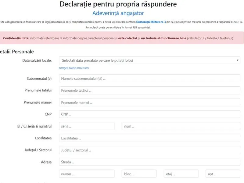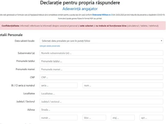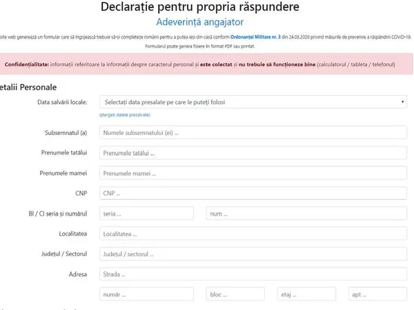Aplicaţie care permite completarea online a declarației pe propria răspundere