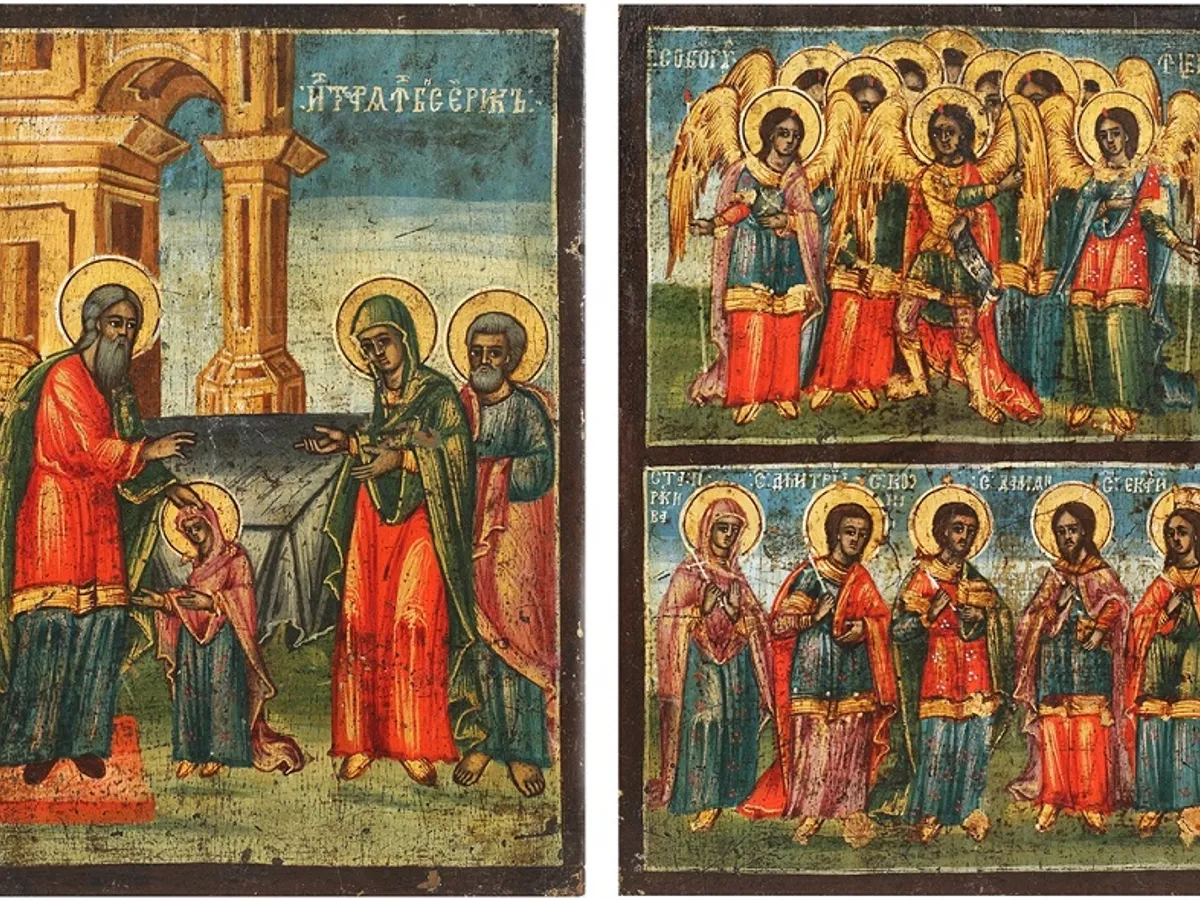 Poate cele mai importante icoane din colecția supusă licitației în Săptămâna Mare sunt o „Maică a Domnului cu Pruncul” realizată în perioada lui Mihai Viteazul, pe fond de aur, în Țara Românească, într-un atelier de tradiție grecească, în stilul picturii cretane (ce pleacă de la un preț de 2.000 de euro), precum și un Arhanghel Mihail, icoană împărătească realizată în Țara Românească în perioada lui Matei Basarab (ce pleacă de la un preț de 1.800 euro).