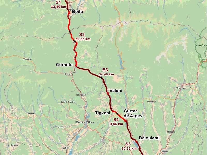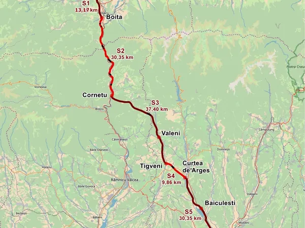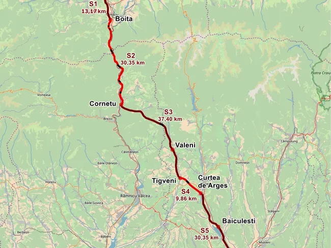 Al doilea tronson de pe autostrada A1 Sibiu - Pitești care va avea constructor este cel de 30,35 km în continuarea actualei A1 București - Pitești și până la Curtea de Argeș.