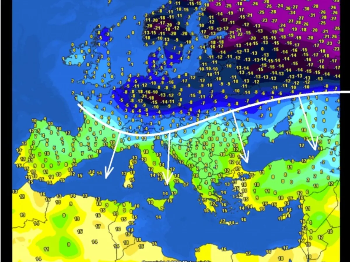 Vremea rece se va extinde spre weekend și va ajunge în sud până în Libia și Egipt. Va fi foarte frig în jumătatea estică a Europei, cel puțin până la mijlocul următoarei săptămâni.