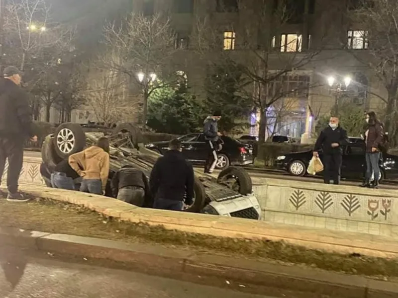 Joi seara, un șofer grăbit și neatent a ajuns cu mașina în ultima fântână de pe Bulevardul Unirii, chiar în fața Palatului Parlamentului.