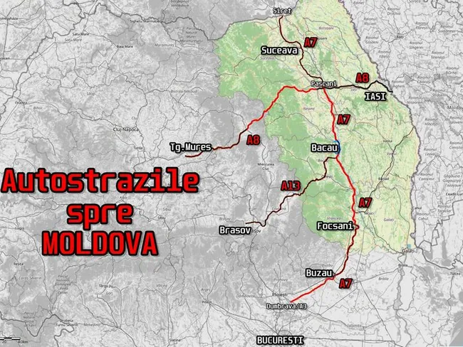 Aproape 440 de kilometri de autostradă în Moldova de la Nord la Sud - „Coloana vertebrală” a Moldovei care străbate regiunea și va face legătura cu Muntenia și București.