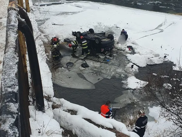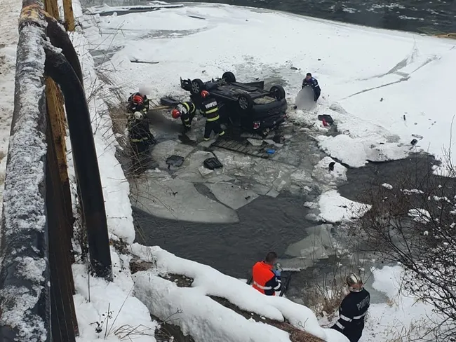 Un autoturism a ieșit în afara părții carosabile și s-a răsturnat în albia râului Bistrița, în municipiul Vatra Dornei.