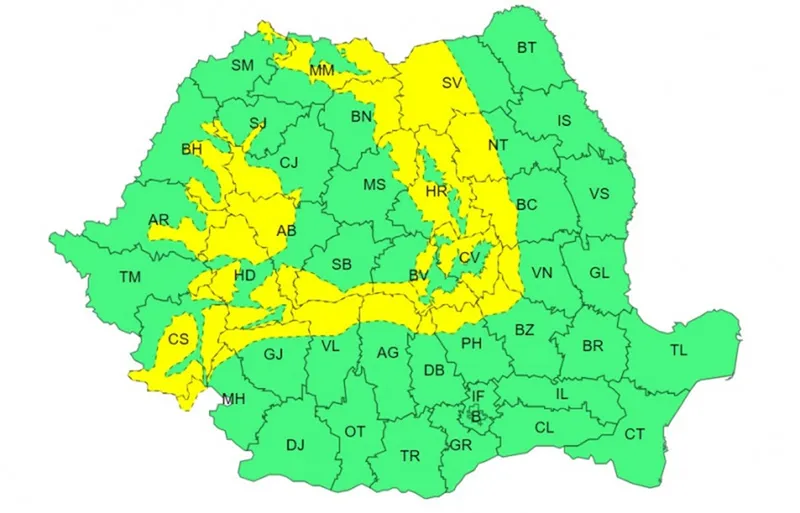 Codul galben de viscol vizează toate zonele montane, mai ales altitudini de peste 1700 de metri. De la ora 16:00 și până vineri dimineață, 26 ianuarie, vântul va sufla cu 100 km/h, va ninge viscolit, iar vizibilitatea va fi redusă.