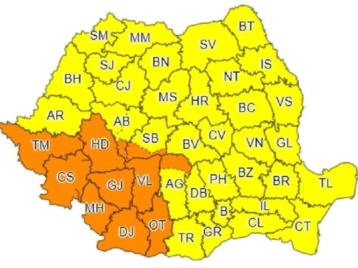 Agenţia Naţională de Meteorologie a transmis o avertizare de cod portocaliu pentru 11 judeţe din țară, până luni după-amiază.