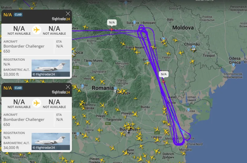 Avioanele de spionaj zboară deasupra Românei și „vânează” orice mișcare a rușilor. În cursul zile de vineri în mod excepțional sub indicativul CL60 au fost în patrulare deasupra graniței României cu Ucraina două aeronave mai ieșită din comun.