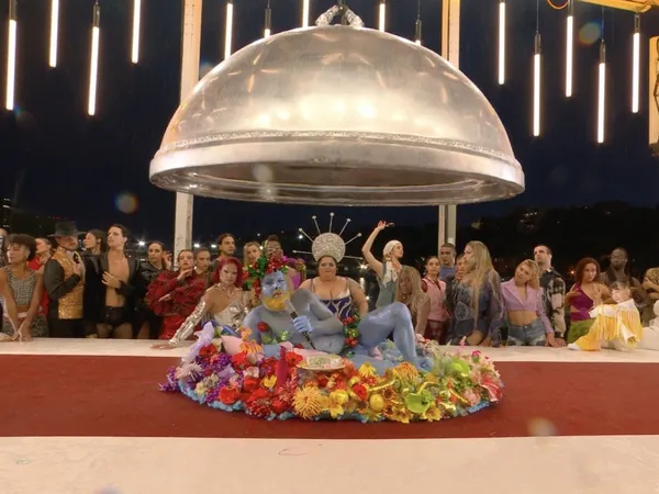 Scena realizată de organizatorii Olimpiadei a combinat de la un punct, din câte se pare, „Cina cea de Taină” cu tabloul „The Feast of the Gods” („Banchetul zeilor”), realizat de pictorul olandez Jan Harmensz van Biljert (1597-1671).