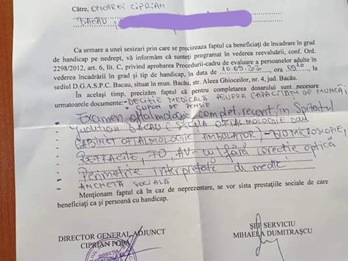 Un caz revoltător a fost relatat de deputatul USR Emanuel Ungureanu care a publicat și o serie de documente pentru a demonstra modul în care autoritățile umilesc persoanele cu handicap.