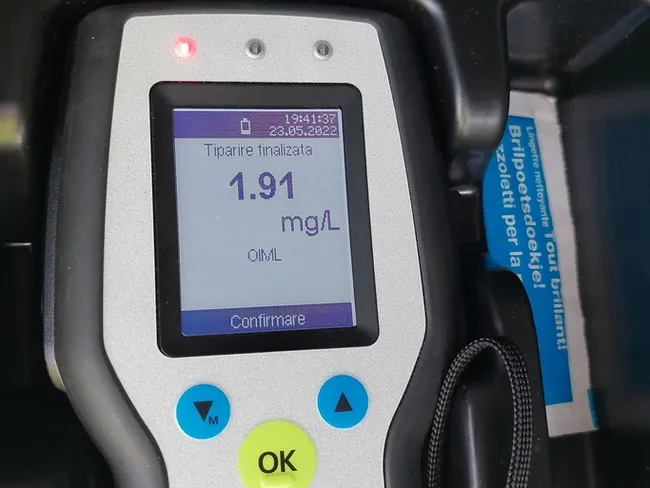 Întrucât bărbatul prezenta halenă alcoolică, acesta a fost testat cu aparatul alcooltest care a indicat o concentraţie de 1,91 mg/l alcool pur în aerul respirat.