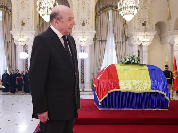 Fostul președinte Traian Băsescu a fost prezent miercuri la ceremonia organizată la Palatul Cotroceni, în Sala Unirii, unde a fost depus sicriul cu trupul neînsuflețit al lui Ion Iliescu.